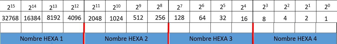 Pour convertir en Hexadicimal, il faut partir du tableau de convertion binaire